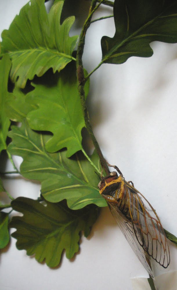 Here is another paper mache sculpture. It is about quercus petraea, with insects that grow in or on it!